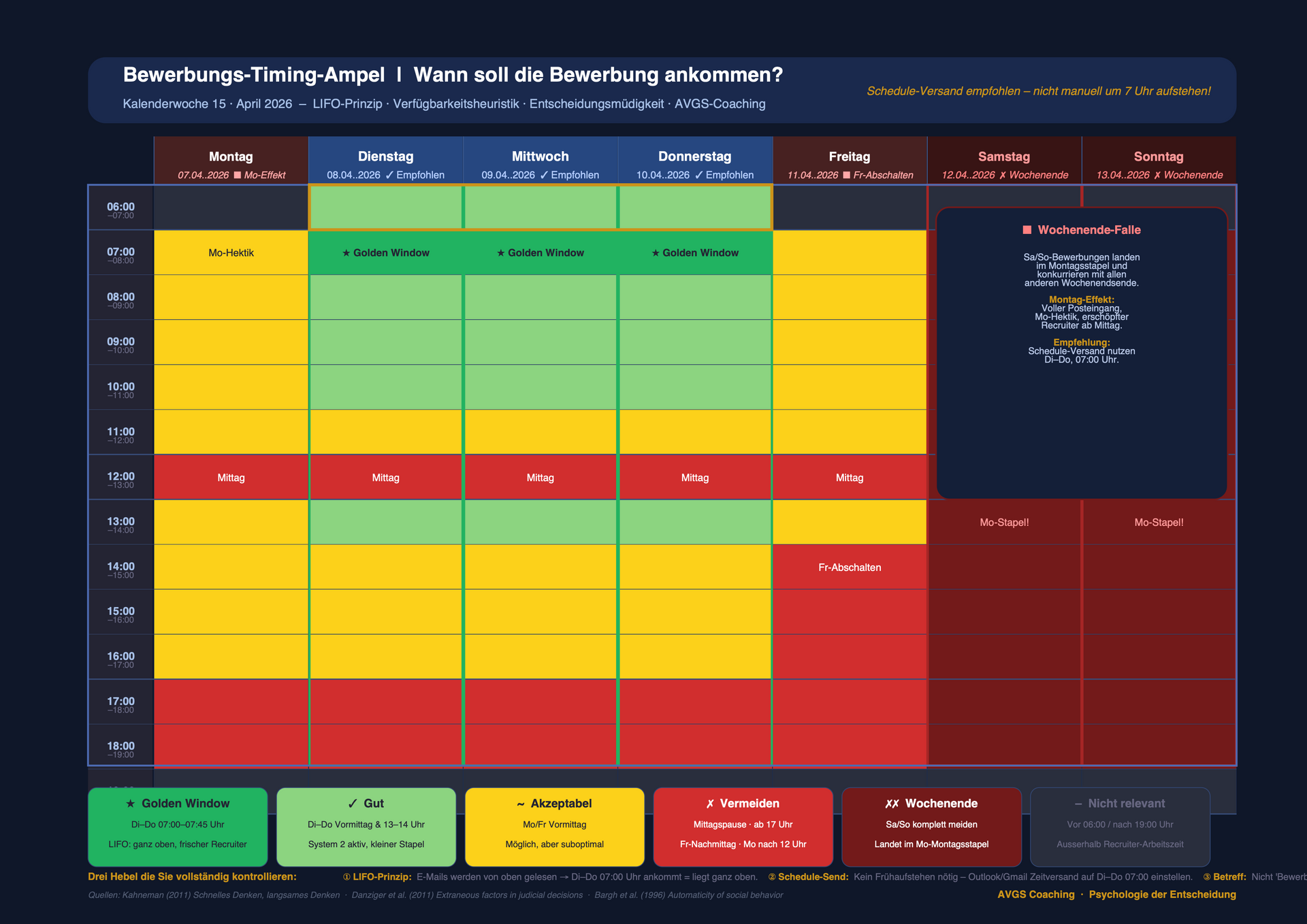 „Das Wochenende: komplett meiden. Die Bewerbung landet im Montagsstapel."