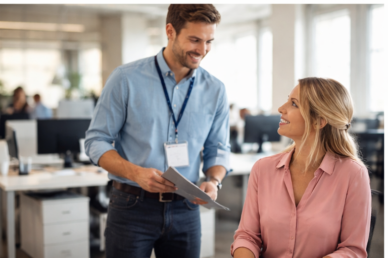 (Name sagen, neu im Betrieb, höflich starten) - Nachfragen, wenn etwas unklar ist