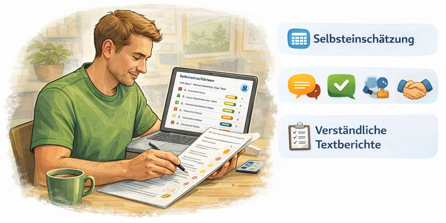 das Selbsteinschätzung und Fremdeinschätzung systematisch zusammenführt.
