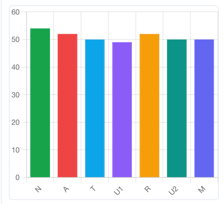 7 Achsen (N, A, T, U¹, R, U², M). Ungetestete Achsen = 0 %.